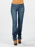 Стильные джинсы прямого кроя - великолепный вариант как для прогулок с друзьями, так и для веселой вечеринки. Тонкая нетрикотажная ткань. Застегиваются на пуговицу и молнию. Спереди два втачных кармана, сзади два накладных кармана. Правый карман декорирован оригинальной вышивкой. Широкие манжеты украшены декоративными лентами.