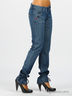 Стильные джинсы прямого кроя - великолепный вариант как для прогулок с друзьями, так и для веселой вечеринки. Тонкая нетрикотажная ткань. Застегиваются на пуговицу и молнию. Спереди два втачных кармана, сзади два накладных кармана. Правый карман декорирован оригинальной вышивкой. Широкие манжеты украшены декоративными лентами.