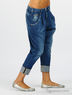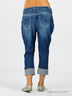 Стильные джинсы широкого кроя, зауженные к низу - великолепный вариант как для прогулок с друзьями, так и для веселой вечеринки. Тонкая эластичная трикотажная ткань. Застегиваются на две пуговицы и молнию. От пояса выполнены складки. Спереди один глубокий втачной карман. Сзади имитация карманов с клапанами. Низ брючин присборен по боковым швам.