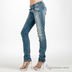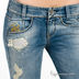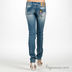 Прямые женские джинсы из плотного материала. Классический крой. Застегиваются на молнию и пуговицу. Украшены потертостями и дырами.