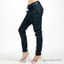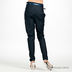 Женские джинсовые брюки зауженные к низу. Завышенная талия. Отрезной пояс. Два передних кармана, два задних с клапанами на кнопках. Застегивается на молнию сбоку. В комплект входит тонкий кожаный ремешок.