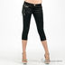 Бриджи женские черного цвета. Классический крой с пятью карманами. Один из задних карманов застегивается на молнию. В дополнение к изделию идет декоративная цепочка на карабинах, которая может быть использована, как браслет.