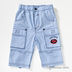 Брюки для мальчика из плотной полосатой ткани с врезными карманами и оригинальными нашивками. Накладные карманы на штанинах.