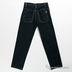 Джинсовые брюки прямого кроя застегиваются на кнопку и молнию. Три передних кармана, два задних кармана. Контрастная прострочка.