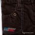 Вельветовые брюки прямого кроя застегиваются на кнопку. Имитация застежки на молнию. К поясу пришиты шлевки.Два передних кармана, три задних кармана, один боковой карман на брючине. Изделие декорировано вышивкой. Анатомический крой колен.