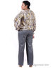 Брюки прямого силуэта, со стрелками, с центральной застежкой гульфик с одной петлей и пуговицей на притачном поясе, по спинке пояс с эластичной тесьмой. В пояс вставлены пять шлевок. Передние половинка каждая с талевой вытачкой.