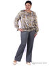 Брюки прямого силуэта, со стрелками, с центральной застежкой гульфик с одной петлей и пуговицей на притачном поясе, по спинке пояс с эластичной тесьмой. В пояс вставлены пять шлевок. Передние половинка каждая с талевой вытачкой.