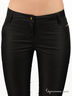 Детали: отрезной пояс со шлевками, треугольная кокетка, застегиваются на металлическую молнию и пуговицу, спереди 2 прорезных кармана на молнии, сзади 2 накладных кармана