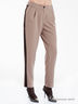 Оригинальные брюки зауженного кроя. Выполнены из приятного на ощупь материала. Отрезной пояс со шлевками для ремня. Застежка на молнию и пуговицу. Спереди 2 втачных кармана. Сзади декоративный прорезной карман. По бокам брючины украшены черными лампасами. Прекрасно сочетаются с любыми по фасону и стилю вещами!