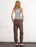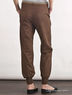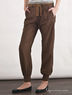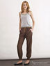 Великолепные брюки из полухлопковой, полульняной ткани. Отрезной пояс со шлевками для ремня. Спереди два прорезных кармана, сзади два прорезных с листочками. Длинные прямые брючины с присборенными манжетами.