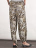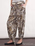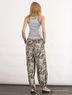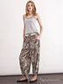 Модные брюки из высококачественного материала с восхитительным восточным узором. Спереди два прорезных кармана. Длинные свободные брючины с лентами на кулисках на манжетах.