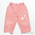 Детские брюки прямого кроя застегиваются на молнию и металлическую кнопку. Втачной пояс со шлевками для ремня дополнен плотной резинкой. Четыре кармана. Декорированы бахромой и аппликацией в виде цветов.