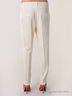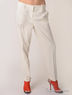 Детали: отрезной пояс со шлевками для ремня, застежка на молнию, два прорезных кармана спереди, зауженные книзу брючины с отворотами.