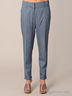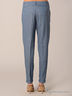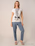 Детали: отрезной пояс со шлевками для ремня, застежка на молнию, два прорезных кармана спереди, зауженные книзу брючины с отворотами.