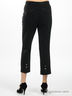 Детали: отрезной пояс со шлевками для ремня; застежка на молнии; спереди и сзади брюки декорированы вертикальной прострочкой; сзади внизу металлические пуговицы; сзади два втачных кармана на молнии