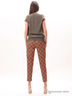 Брюки стильные молодежные с заниженной посадкой. К низу зауженные. В боковых швах карманы "хулиганы". Ткань оранжево-зеленая в ромбик.