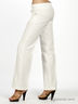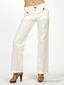 Белые льняные брюки отлично подойдут для летней прогулки. Прямой крой. Отрезной пояс с декоративными пуговицами. Застежка на молнию и пуговицу. Два передних кармана.