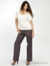 Льняные брюки отлично подойдут для летней прогулки. Прямой крой. Отрезной пояс с декоративными пуговицами. Застежка на молнию и пуговицу. Два передних кармана.