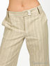 Элегантные льняные брюки. Свободный силуэт, отрезной пояс. Есть шлевки для ремня. Застежка на молнию и на две пуговицы. Два кармана спереди и два прорезных кармашка на пуговицах сзади. Клеш от бедра.