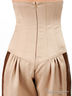 Детали: высокий корсетный пояс на косточках с застежкой на спине, от пояса выполнены складки. По боками изделия блестящие контрастные вставки