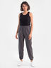 Брюки с карманом и притачным поясом на резинке, что придает комфорт и не сковывает свободу движения, посадка высокая . Модель полуприлегающего силуэта, брючины слегка заужены к низу, на манжете с резинкой.