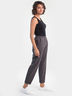 Брюки с высокой посадкой выполнены из костюмного полотна. Модель полуприлегающего силуэта, брючины слегка заужены к низу. Притачной пояс на резинке обеспечит комфорт и свободу движения.