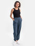 Брюки с карманом и притачным поясом на резинке, что придает комфорт и не сковывает свободу движения, посадка высокая . Модель полуприлегающего силуэта, брючины слегка заужены к низу, на манжете с резинкой.