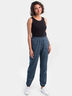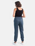 Брюки с карманом и притачным поясом на резинке, что придает комфорт и не сковывает свободу движения, посадка высокая . Модель полуприлегающего силуэта, брючины слегка заужены к низу, на манжете с резинкой.