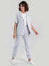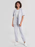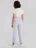 Легкие льняные брюки с карманом и притачным поясом на резинке, что придает комфорт и не сковывает свободу движения, посадка высокая . Модель полуприлегающего силуэта, брючины слегка заужены к низу, на манжете с резинкой.