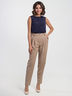 Элегантные брюки полуприлегающего силуэта с удобными карманами. Модель высокой посадки выполнена из костюмной ткани. Застежка классическая на молнию и пуговицу. Резинка в задней части пояса обеспечит комфорт и свободу движения.