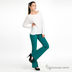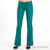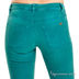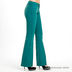 Джинсы-клеш женские зеленого цвета. Пятикарманный крой. Есть шлевки для ремня. Застегиваются на молнию и пуговицу.