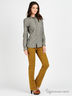 Детали: отрезной пояс со шлевками, треугольная кокетка, застегивается на молнию и пуговицу, 5 карманов