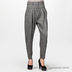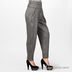 Женские брюки из льняного материала. Посадка пояса чуть ниже линии талии, широкая кокетка, спереди на каждой штанине заложены встречные складки, к низу заужены.