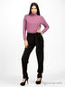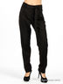 Детали: к поясу пришиты шлевки, вставлен пояс; скрытая застежка на пуговицу и молнию, два передних кармана, имитация задних карманов, декоративные складки-сборки от линии пояса, отвороты, стрелки