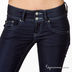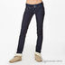 Узкие брюки из темного джинсового хлопка. Широкий пояс посадки на бедрах, есть шлевки под ремень. Все карманы функциональные. Штанины узкие прямые от колена.