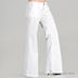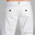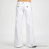 Слегка расклешенные книзу брюки из плотного хлопка. Застегивается на пуговицы. Два передних кармана, два задних с клапанами на пуговицах. Пояс и края карманов украшены декоративной прострочкой. Шлевки оформлены кружевом и клепками.