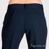 Женские брюки прямого кроя. Застегиваются на две пуговицы и молнию. Посажены на отрезной пояс с шлевками под ремень. Два передних кармана на пуговицах, один задний прорезной.