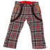 Детали: отрезной пояс со шлевками; застежка на кнопку; два кармана; принт - клетка; нашивки, имитирующие подтяжки