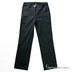 Модель классического кроя застегивается на молнию и пуговицу. В пояс вставлена резинка, нашиты петли для ремня. Два передних кармана, правый карман декорирован стразами.