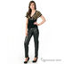 Стильные брюки "под кожу", зауженные к низу. У брюк спереди два кармана с застежкой на молнии, сзади два накладных кармана.