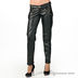 Стильные брюки "под кожу", зауженные к низу. У брюк спереди два кармана с застежкой на молнии, сзади два накладных кармана.