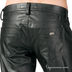Стильные брюки "под кожу", зауженные к низу. У брюк спереди два кармана с застежкой на молнии, сзади два накладных кармана.
