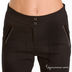 Втачной пояс, застежка на молнии и на две пуговицы, два прорезных кармана с листочком из отделочной ткани.