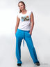 Женские спортивные брюки выполнены из гладкого хлопка, регулируются по ширине вдетой кулиской.