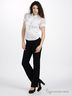 Детали: втачной пояс с шлевками под ремень, застежка на молнии и на пуговице, сзади разрезы, имитирующие карманы с хлястиками на пуговице.