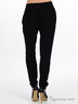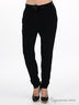 Детали: пояс на кулиске с задней стороны посажен на резинку и декорирован стразами, два прорезных кармана, по поясу сборка, брючины заужены к низу.