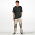 Прямые мужские брюки. Сзади и на коленках вставки из плотного материала. Застегиваются на молнию и пуговицу. Шесть карманов.