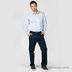 Классические прямые брюки из хлопка застегиваются на пуговицу и молнию. На поясе имеются шлевки для ремня. Два кармана сзади и два спереди.