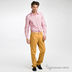Брюки мужские из легкой хлопчатобумажной ткани желтого цвета. Классический крой с пятью карманами. Застежка на молнии и пуговице. Есть шлевки для ремня.