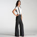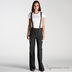 Креативные женские брюки с подтяжками. Втачной пояс с застежкой на пуговицы, четыре прорезных кармана, брючины слегка расклешенные.